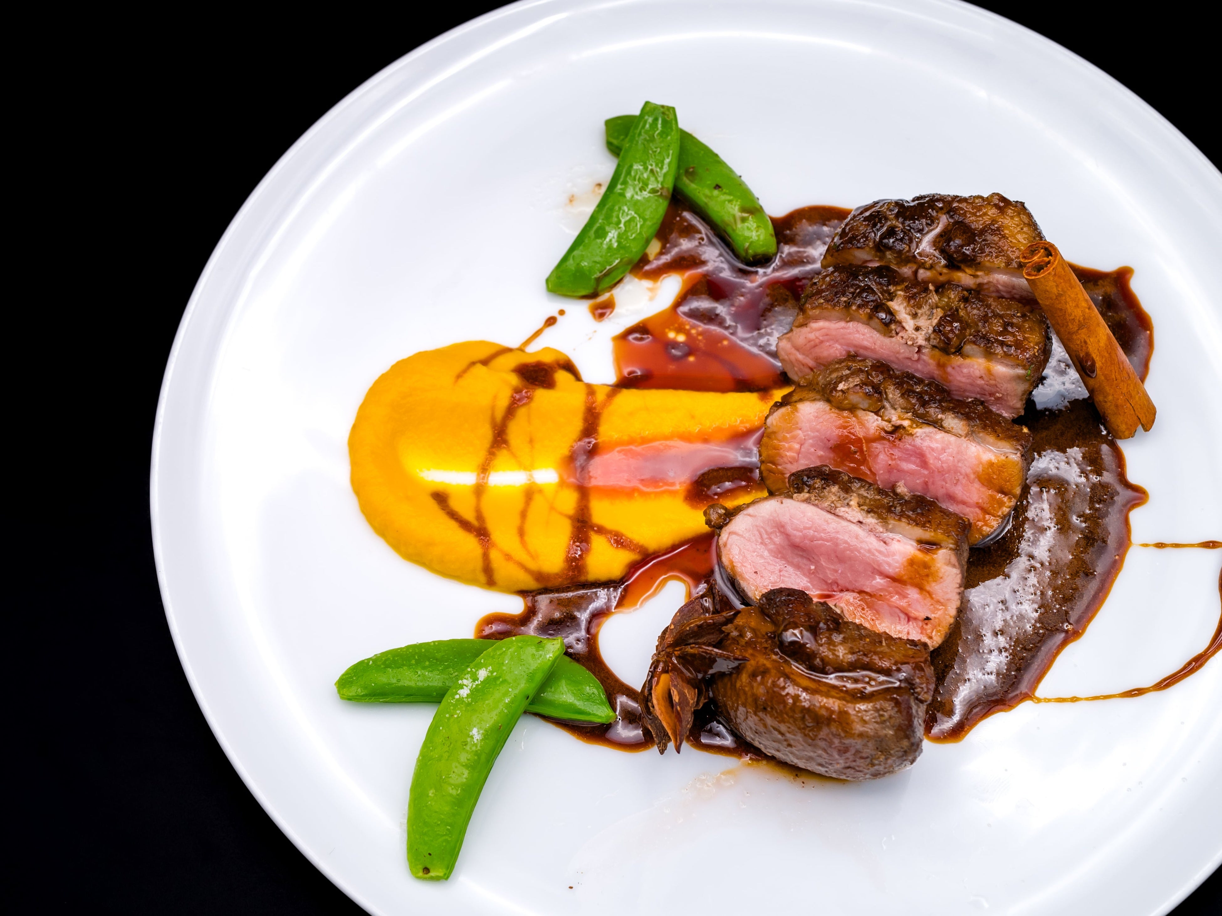 コクのある赤ワインヴィネガーソースは鴨胸肉の味わいにより深みを持たせながら、程よい酸味でさっぱりとした後味に仕上げてくれます。