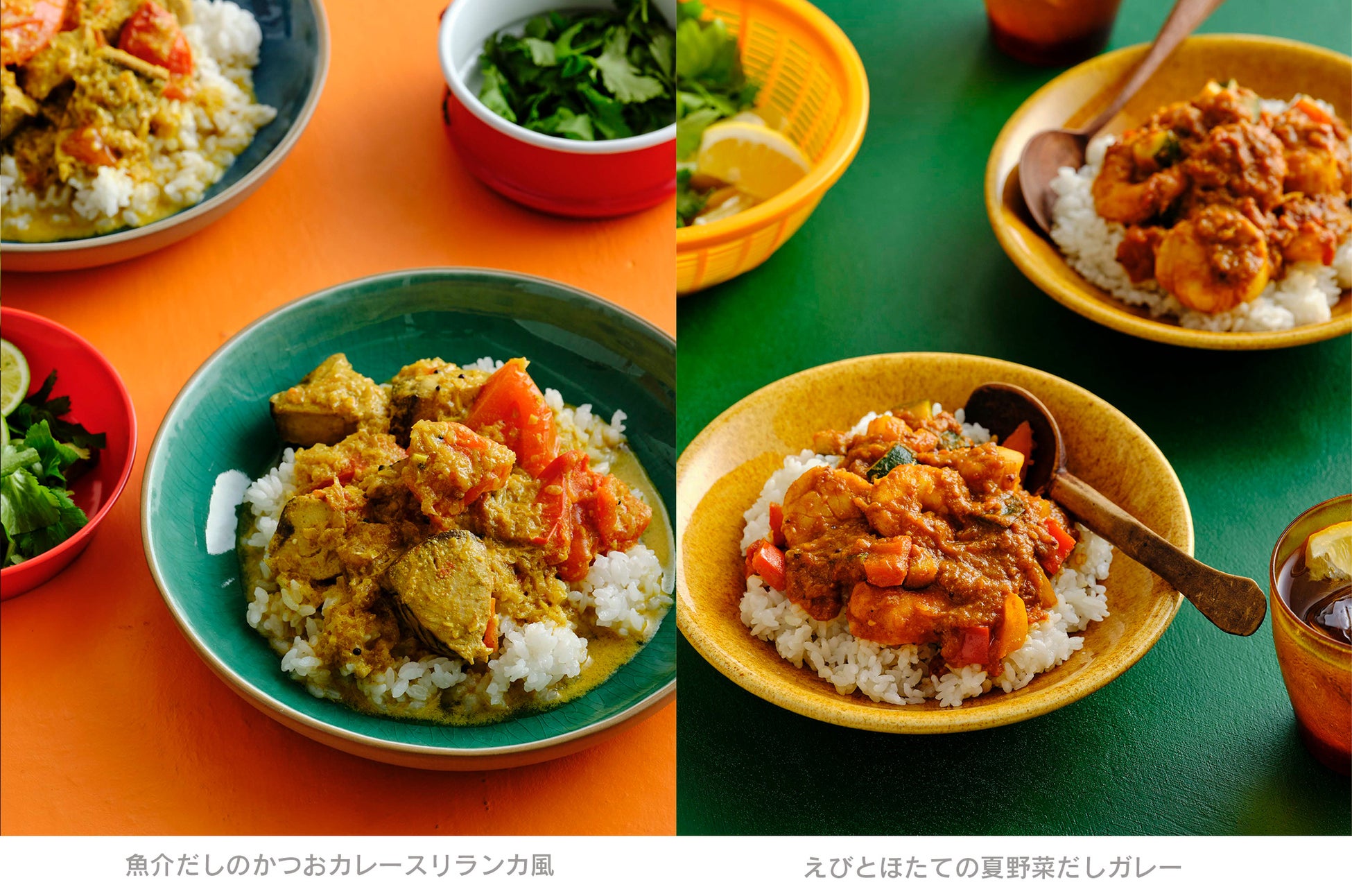 そんな彼が、インドでもない、欧風でもない、煮干しや昆布をはじめ、かつお、さばなどの厚削り節の「お出汁」をふんだんに使った日本ならではのスパイスだしカレーのレシピを監修しました。