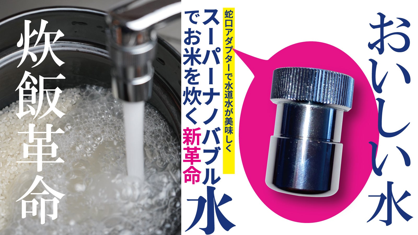 おいしいお米だけではなく、美味しくごはんを炊くためにはおいしいお水が欠かせません。炊飯で大切なお水を、キッチンの蛇口に装着するだけで手軽に「スーパーナノバブル水」にグレードアップすることで、よりおいしく炊き上げることが可能になります。ごはんの美味しさを炊飯革命で再発見してほしい。