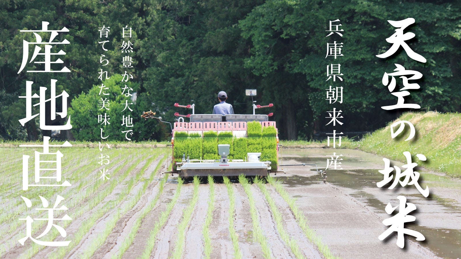 お米づくりは通常半年ほどですが、1年間かけて2倍も3倍も手間暇のかかった、幻のお米「天空の城米」。収穫量が少なく市場に出回ることがほとんどありません。一般的なお米づくりは農薬や化学肥料に頼りながら生産をするのですが、「天空の城米」は農薬・化学肥料は栽培期間中不使用の兵庫県産の1等級特別栽培米、本当においしいお米をこだわり抜いて生産している農家と皆様をダイレクトにつなげ、令和5年産今秋産地直送で収穫したての新米をお届けします。