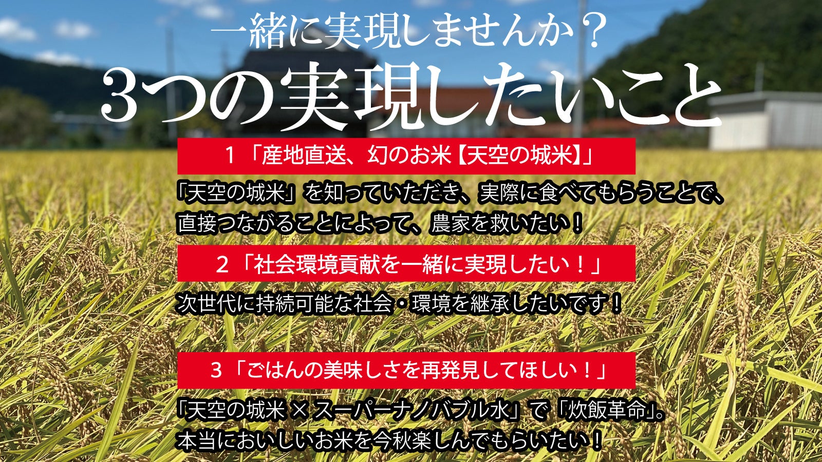 「天空の城米」を知っていただき、実際に食べていただくことで、直接つながり、農家を救いたい!