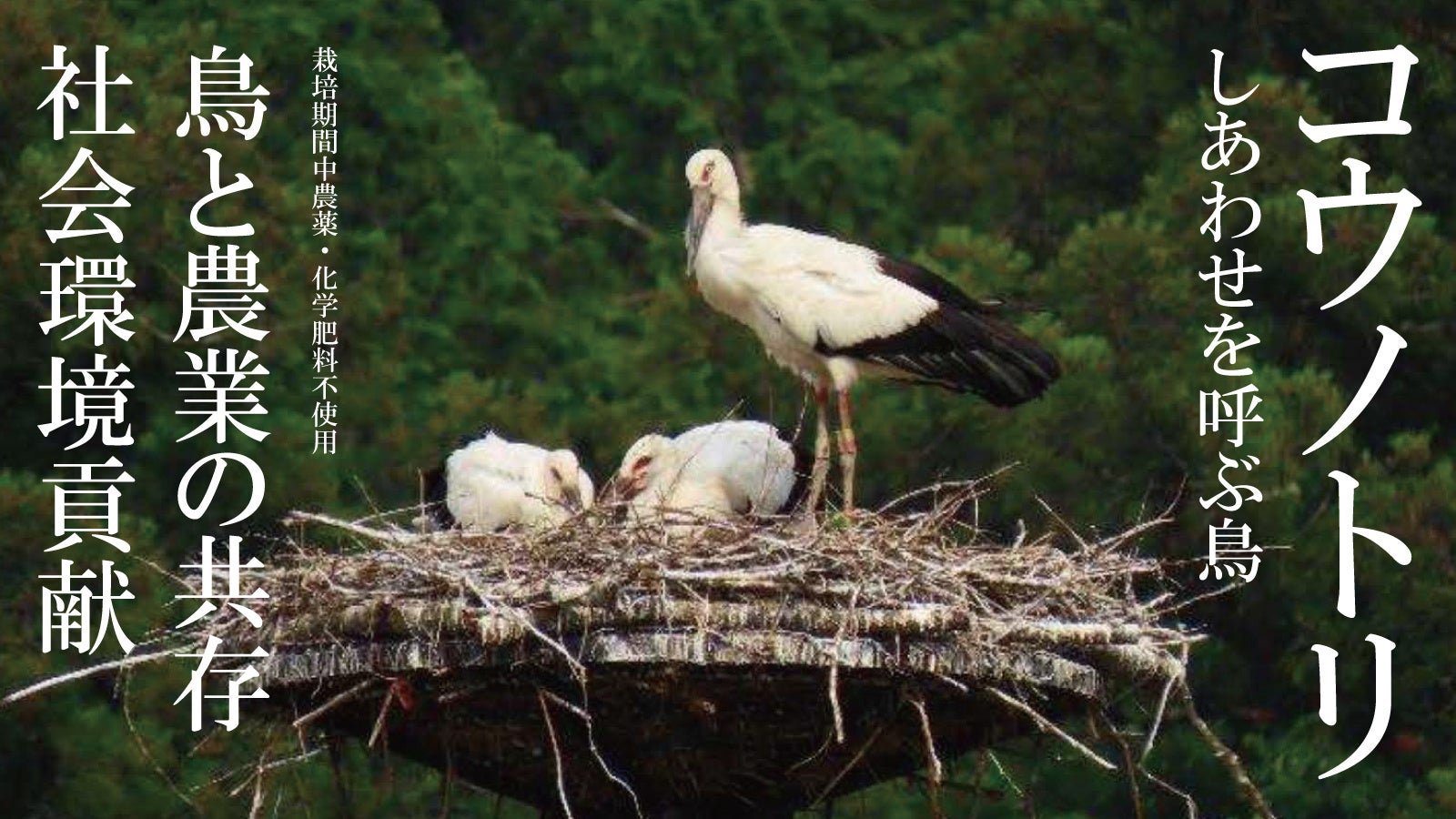 絶滅危惧種に指定されている、しあわせを呼ぶ鳥「コウノトリ」と共存できる農法で人と自然にもやさしいお米づくりを追求しています。地球・動物・人が共存共栄できる社会を目指していきます。