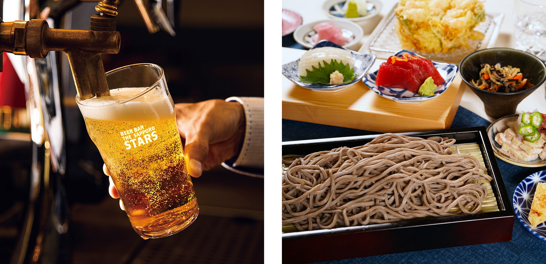 ビヤバー「BEER BAR THE SAPPORO STARS」とそば酒場「豆皿料理・酒 そばまえ」は、北海道ならではのこだわりを詰め込んだ新業態です。さっぽろ地下街ポールタウン直結の地下2階飲食フロア「moyuk Dining」でmoyuk SAPPOROに足を運ぶ幅広い年齢層・時間帯のお客様に、ランチやちょっとした合間のカフェ利用、飲み、飲み終わりの「シメ」まで、様々な用途で楽しんでいただける、日常づかいにおすすめな2店舗です。