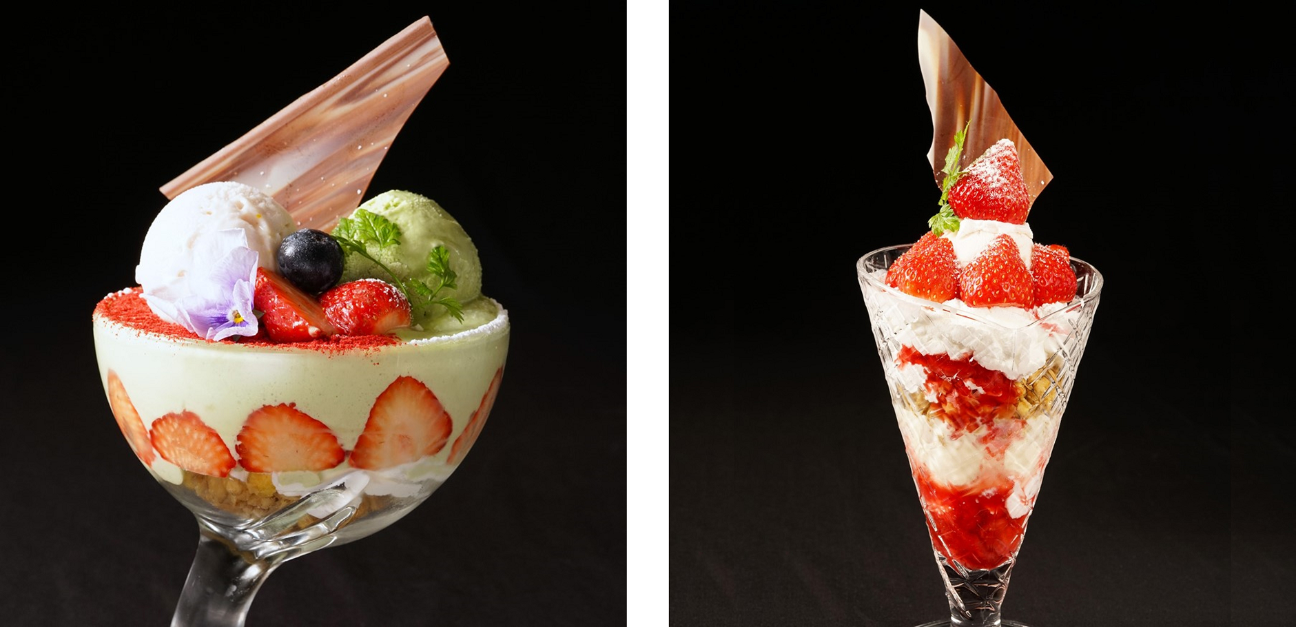 (左)★ピスタチオフレジエとイチゴのパフェ 1,408円
