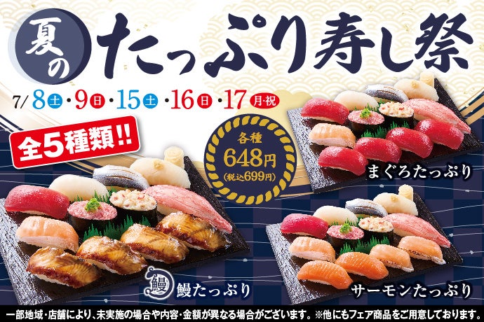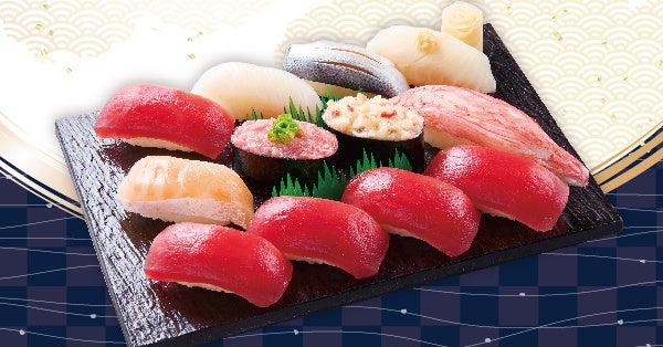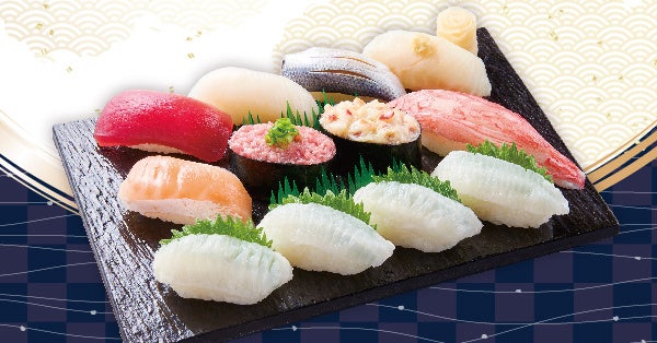 まぐろ!鰻!えび!サーモン!えんがわ!の全5種の人気ネタと小僧寿しの定番ネタがたっぷり12貫入った一人前商品「たっぷりにぎり」と人気の手巻寿しセール!!