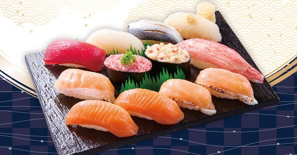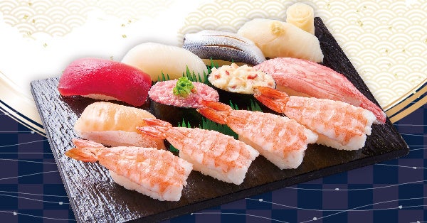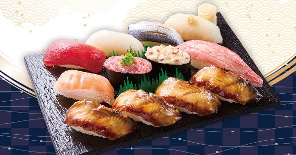 まぐろ!鰻!えび!サーモン!えんがわ!の全5種の人気ネタと小僧寿しの定番ネタがたっぷり12貫入った一人前商品「たっぷりにぎり」と人気の手巻寿しセール!!