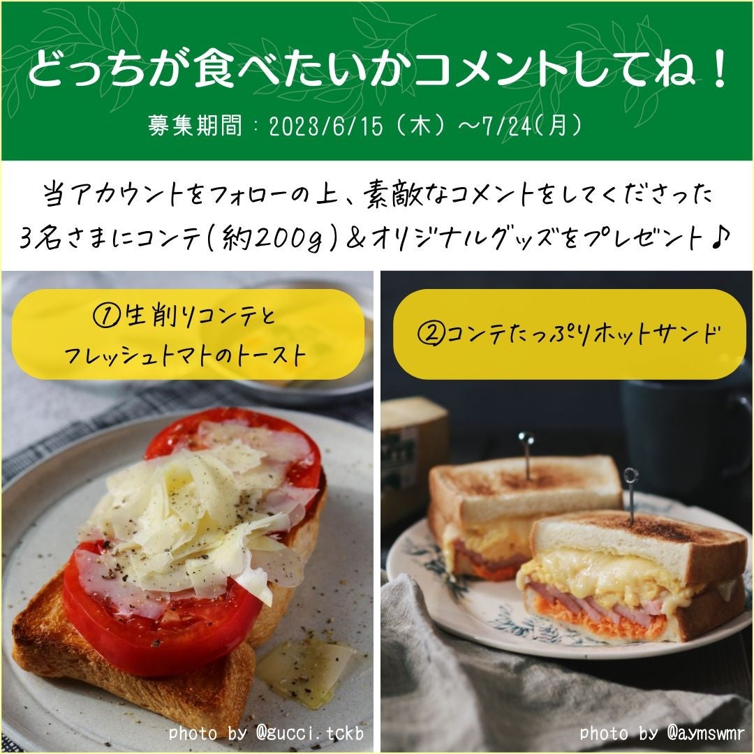 コンテチーズ生産者協会は、このコンテの魅力をさらに発信するため、コメント募集型のプレゼントキャンペーンを下記要領で実施中です。