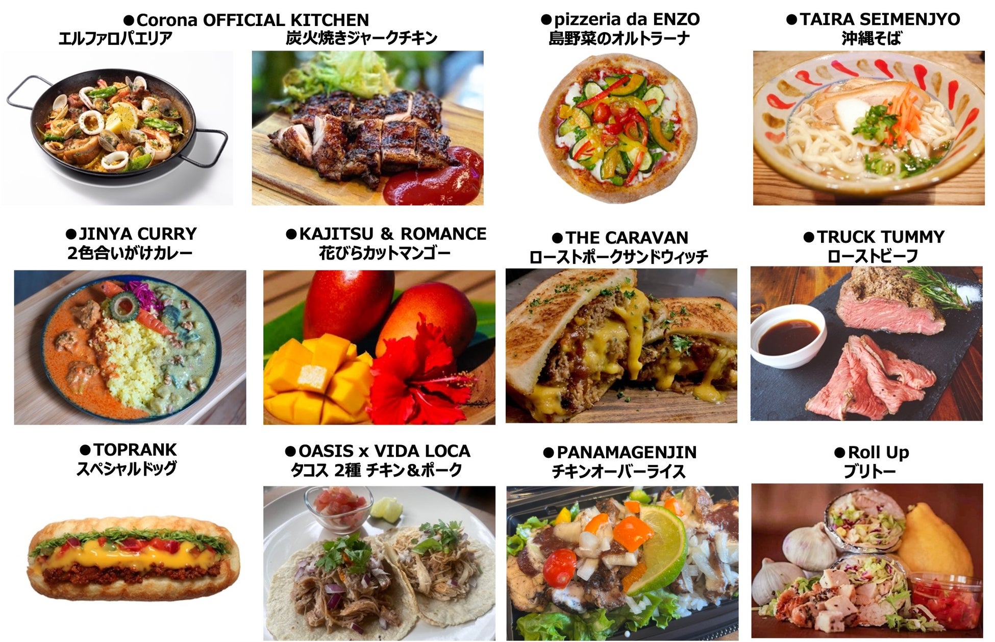 フードエリアには、沖縄県内で活躍しているレストランが多数出店します。「BLUE STANDARD」の評価項目である地産地消や、プラントベースメニューを取り入れ、沖縄県のローカルフードとして愛される「沖縄そば」、「タコス」さらに「ヴィーガンカレー」などバラエティー豊かな飲食ブースが登場します。