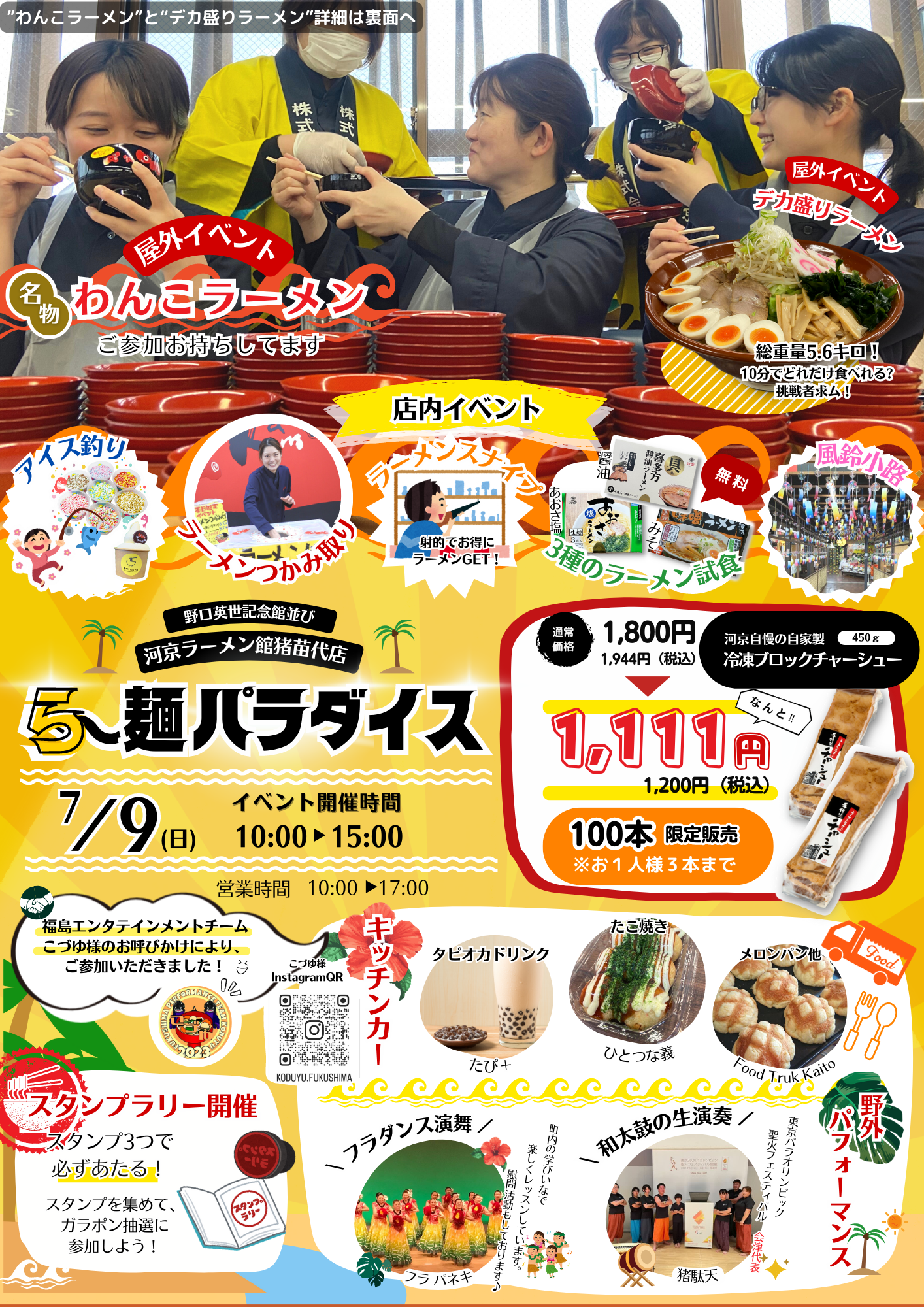 7月9日(日) 10:00~15:00 「ら~麺パラダイス」を開催します。