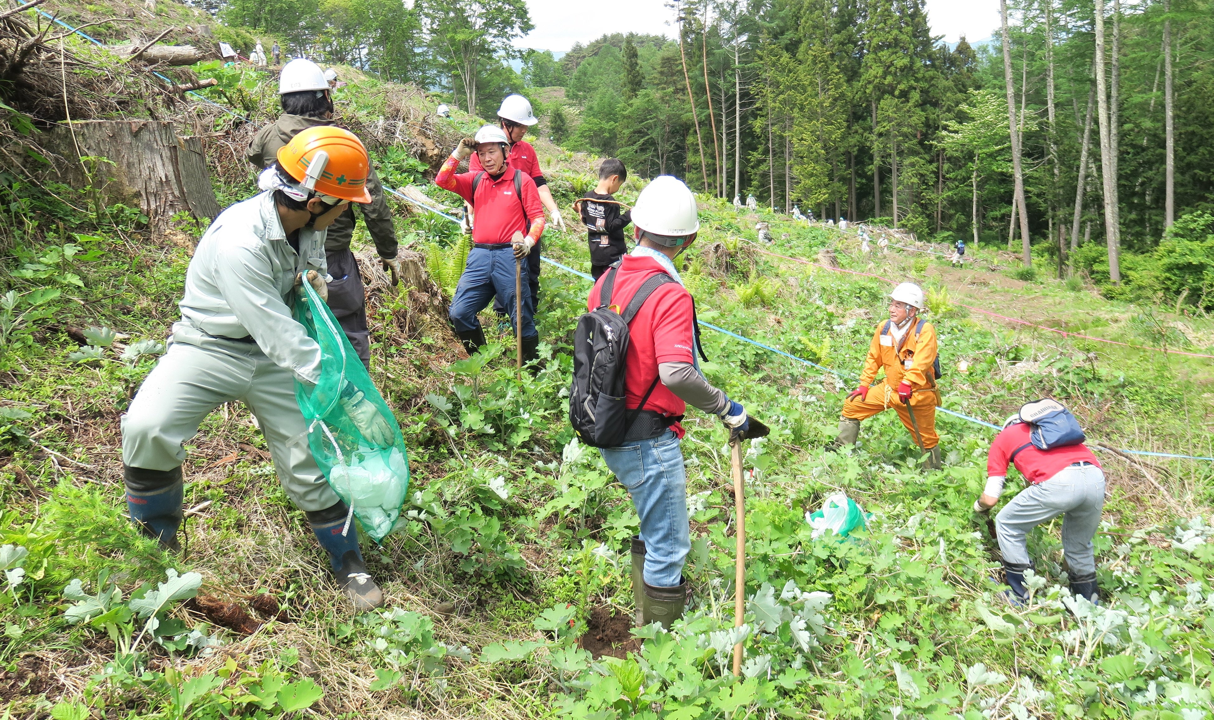 また、調印式に先立ち、5月27日に長野県小県郡長和町で行われた「植樹のつどい」には、上田工場や長野営業所の従業員や家族ら20名が参加し、他の参加者の皆様とともに2300本のカラマツを植樹しました。