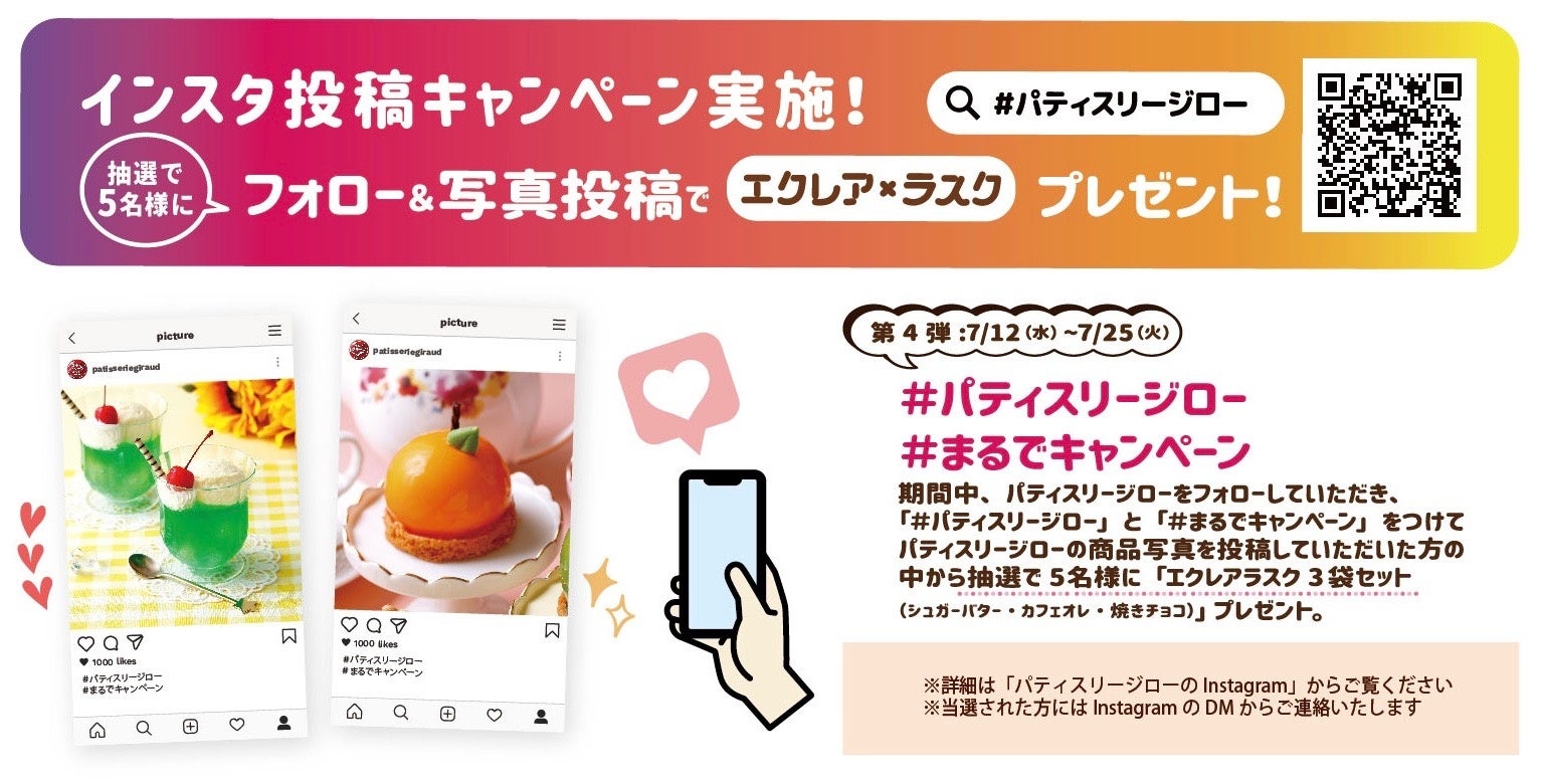 ① パティスリージローのInstagramをフォロー(以下のQRコードからフォローできます)