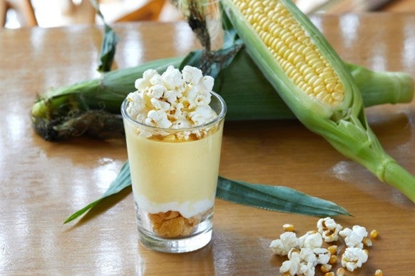 ミルクで抽出したコーン茶をスムージーにし、コーンの変わる食感を楽しんでいただけるよう、