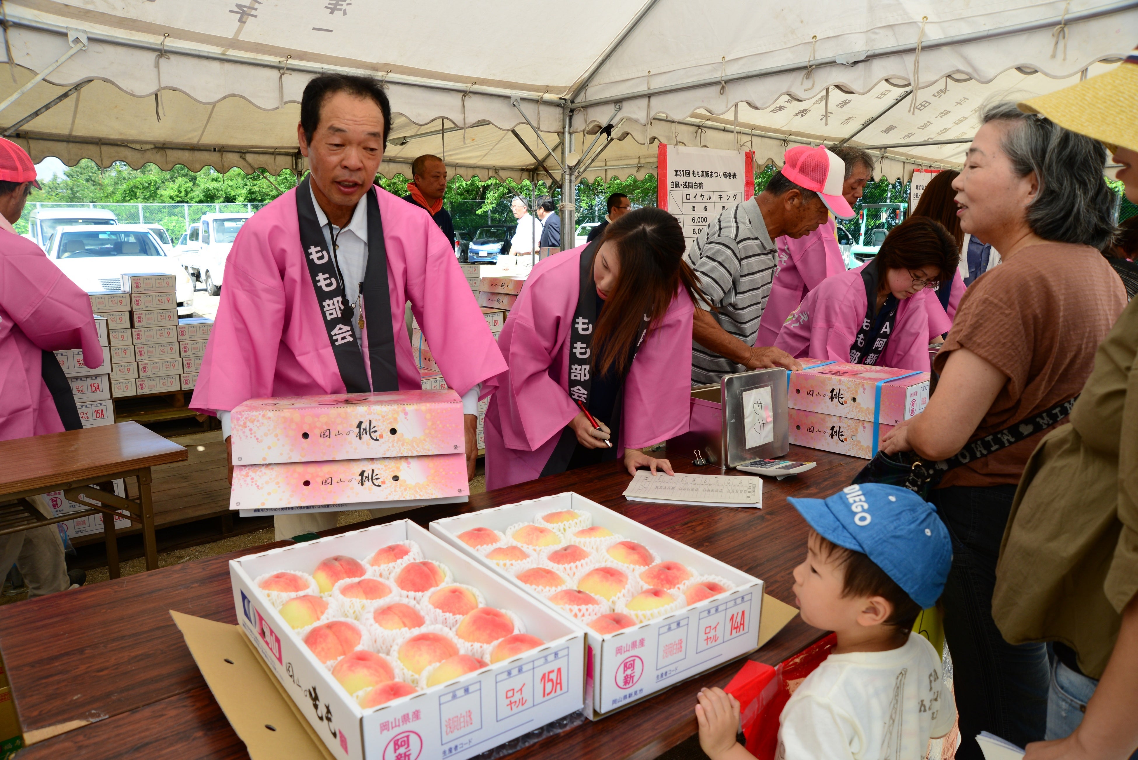 「第39回草間もも直売まつり復活2023」は、JA晴れの国岡山阿新桃部会が産地の旬を迎える「赤い桃」を多くの人々に届けようと、毎年開催しているイベントです。新型コロナウイルスの感染拡大の影響で、ここ4年ほど開催できませんでしたが、今年は念願のイベント開催となります。