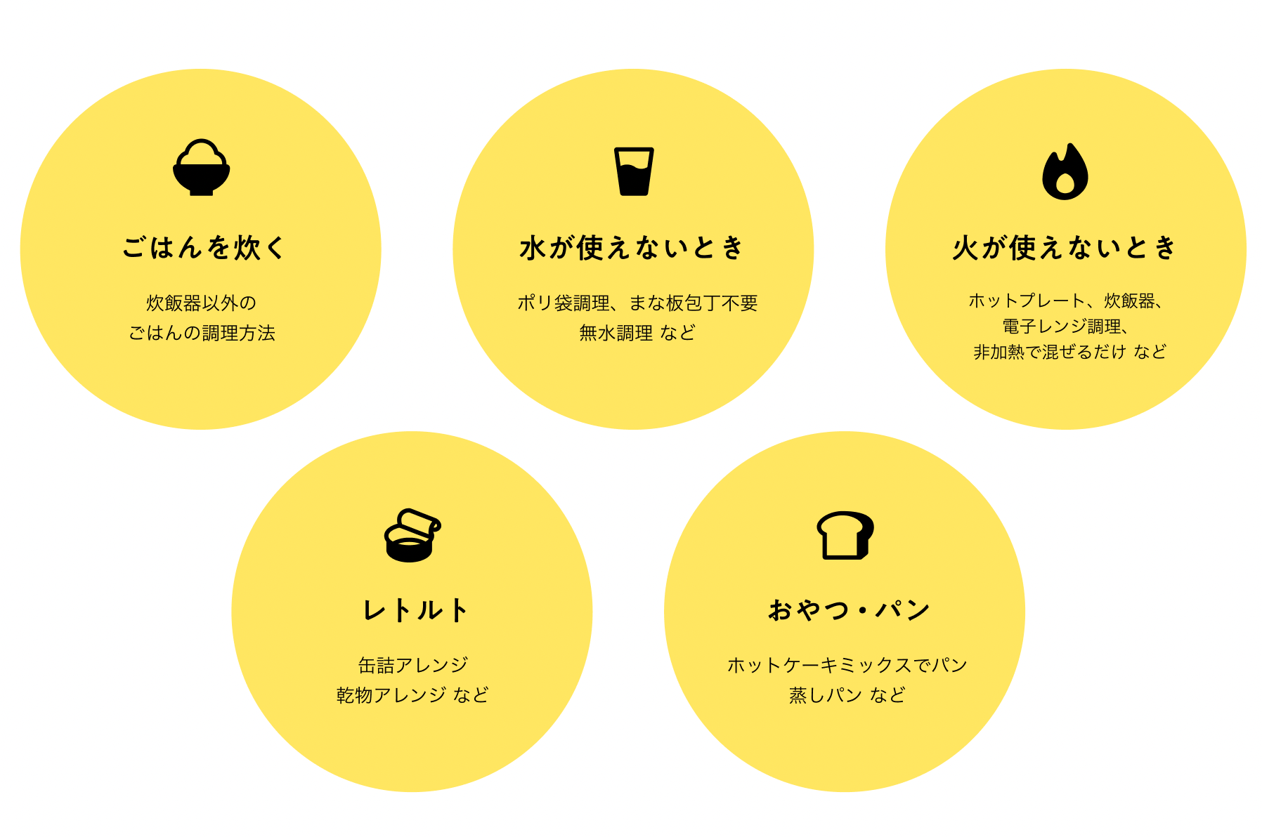 ・火が使えない時の料理(ホットプレート、炊飯器、 電子レンジ調理、 非加熱で混ぜるだけの料理など)