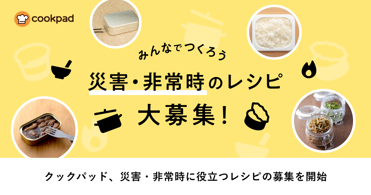 生活インフラに問題が生じた時など、調理環境が十分でない中でも作ることができるレシピを広く募集します。新規レシピ投稿に限らず、クックパッドに既に投稿されている自分以外のレシピ情報も募集しています。