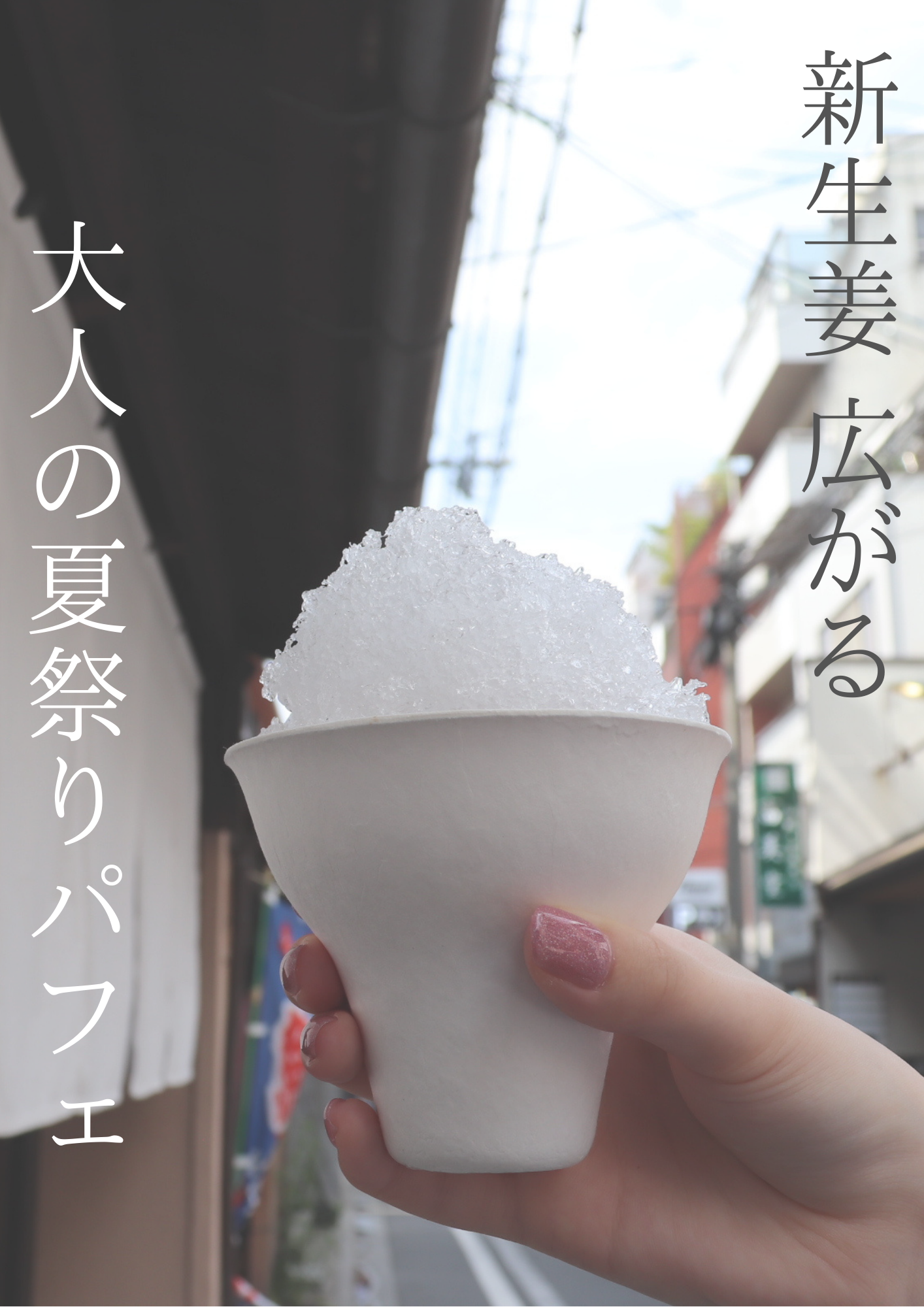 新生姜をふんだんに使った冷やし飴を思わせるかき氷とQeFareのシグニチャーパフェであるチョコバナナのパフェを組み合わせることで、暑い祇園祭を涼みながら楽しんでいただけます。