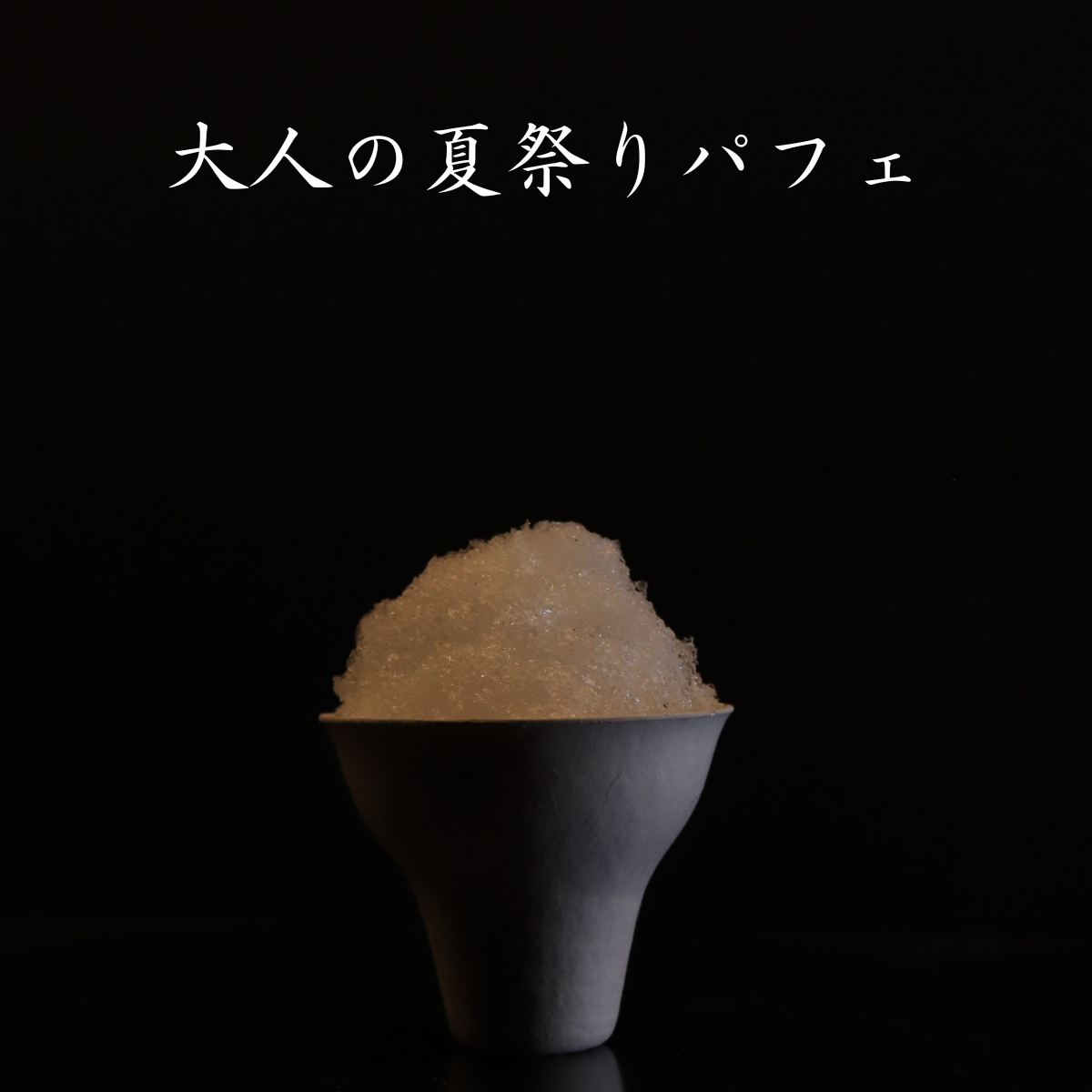 夏祭り、祇園祭の主役はパフェではなくパフェを食べられる方、という想いから見た目もさっぱりとシンプルに仕立てました。「映え」がなによりも意識されるなか、ご自身で経験しないと、味わわない分からない楽しみをご提供したいと考えています。