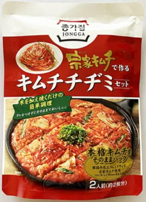 キムチを使ったチヂミ(韓国のお好み焼き風料理)を簡単に作るための調味料です。
