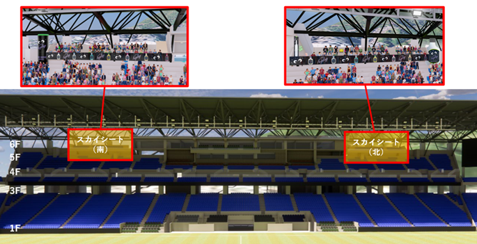 メインスタンド側の6階に位置し、スタジアムを俯瞰できる場所に約90席設置いたします。