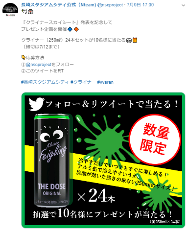 ①長崎スタジアムシティプロジェクトの公式Twitterをフォロー(@nscproject)