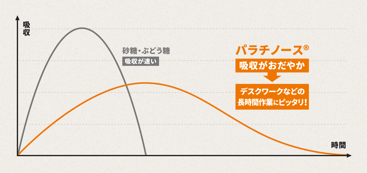 Palatinose(パラチノース)は、長時間集中したい時の栄養補給に適した“持続性エネルギー源”です。