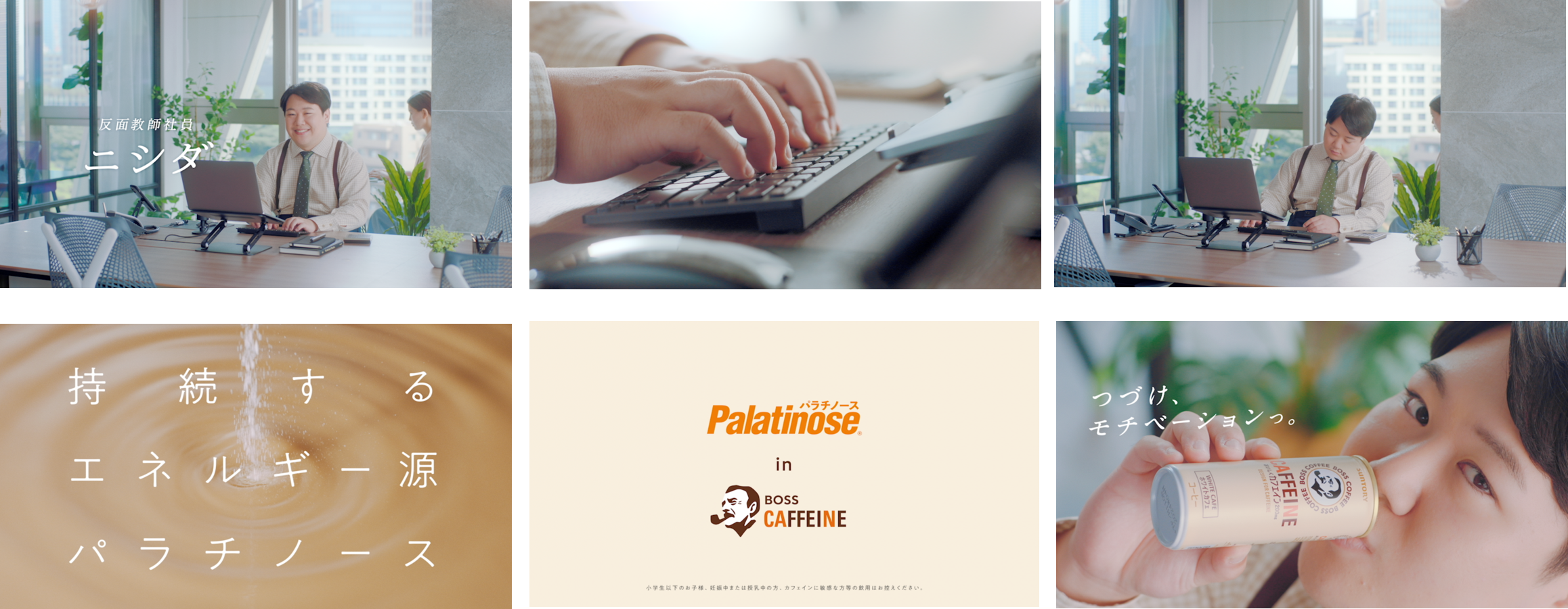 つい「仕事をしているようでできていない」と感じた時には、パラチノースをBOSS CAFFEINEから摂取していただきたいということを訴求しています。※BOSS CAFFEINEにパラチノースが一定量配合されています。