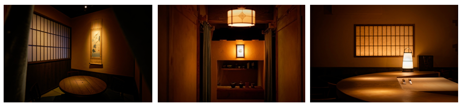 内装には、土壁や古木、和紙や石など、江戸時代にも使われていた材料を使用しています。さらに照明も行灯のような柔らかな光とし、上品で落ち着いた雰囲気を演出。また、裏勝りの文化(注1)を一石三鳥なりに解釈し、隠れた部分でこっそり派手なあしらいをしております。そのあたりの詳細はぜひ現地でご確認ください。