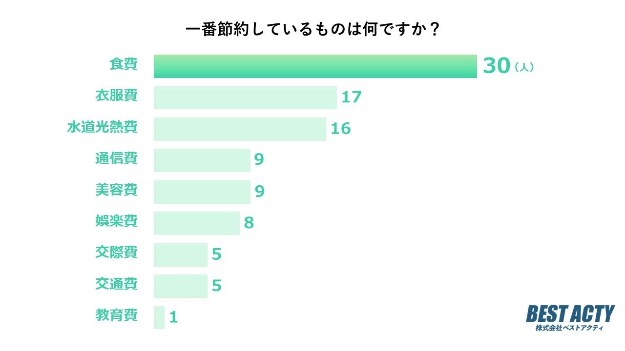 アンケートの結果、「食費」と答える人が最も多い結果となりました。