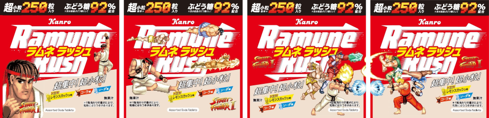 リュウやダルシムをはじめ人気キャラクターが必殺技を繰り出して戦う姿を、ビジネスパーソンが目の前の課題に立ち向かう姿と重ねたデザインとなっており、仕事や勉強に立ち向かうとき、「戦う相棒的存在」として、ストリートファイターの世界観とともに、ラムネラッシュをお楽しみください。