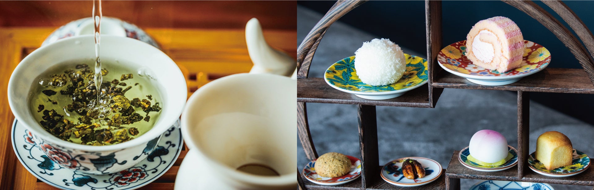 さらに、日替わりのお茶菓子に合わせる中国茶には、花茶・緑茶・白茶・青茶・紅茶・黒茶をご用意。お好きなお茶をお選びいただき、ポットでご提供いたします。