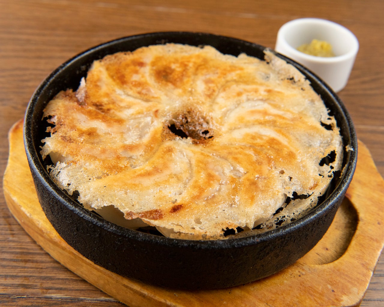 お店で毎日手包みし、肉の旨みと野菜の甘みを閉じ込め、鉄鍋で焼き上げた餃子は、外はカリッと皮はモチッと中はジューシー。ご来店されるお客様のほとんどが注文される看板メニューです。