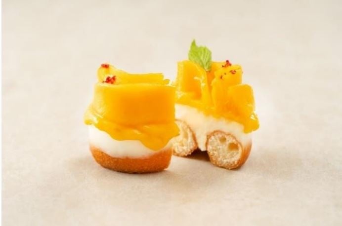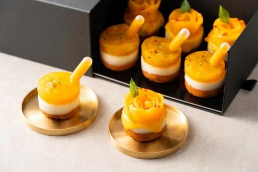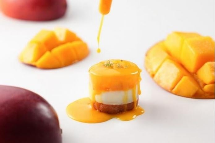 旬のマンゴーを薔薇の形にデコレーション。生クリームとホワイトチョコレートを合わせたオリジナルマンゴーソースの濃厚でミルキーな甘さが贅沢な味わい。