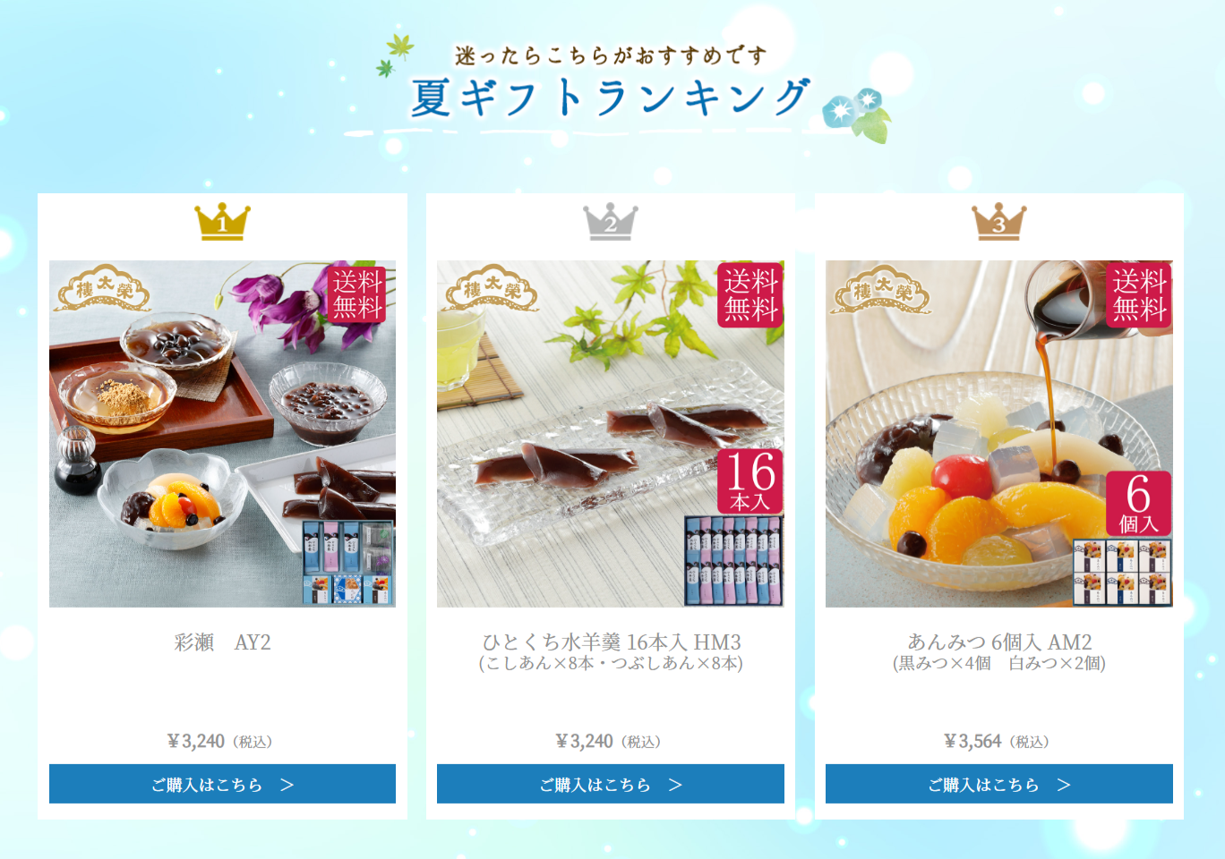 公式オンラインストア 夏ギフト人気ランキング ベスト3
