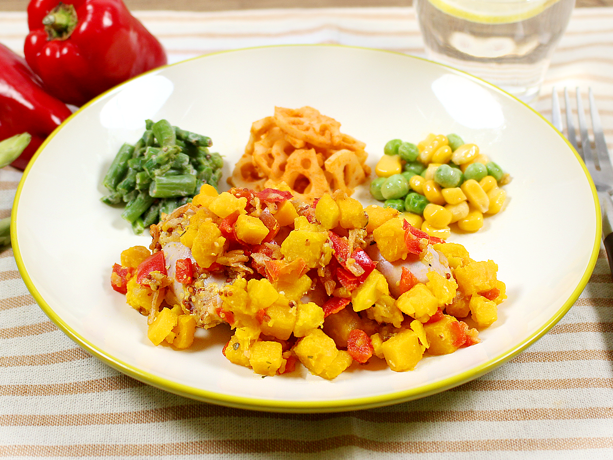 通常じゃがいもとベーコンを使うドイツ風の料理ジャーマンポテトを、カボチャとウインナーに置き換えてプレートにしました。粒マスタードの酸味、パプリカの甘味がアクセントになり、優しさの中にも力強さを感じる仕上がりとなっています。