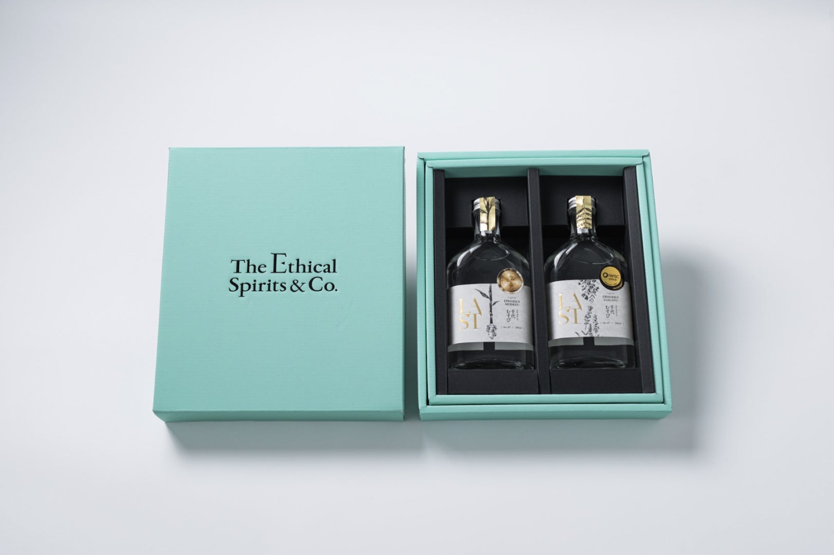 「最後」と「続く」という一見矛盾する2つの意味を持つ単語“LAST”は、日本酒の製造で最後に残る「酒粕」を蒸留することで再び生まれたエシカルなジンです。ギフトには、エシカル・スピリッツの始まりのジンである「LAST – MODEST – 200ml」と世界で最も権威ある品評会のひとつとして知られる「IWSC」にて最高金賞を獲得した「LAST – ELEGANT – 200ml」のギフトセットがおすすめです。「まるで飲む香水」と謳うにふさわしい華やかなジンをお楽しみください。