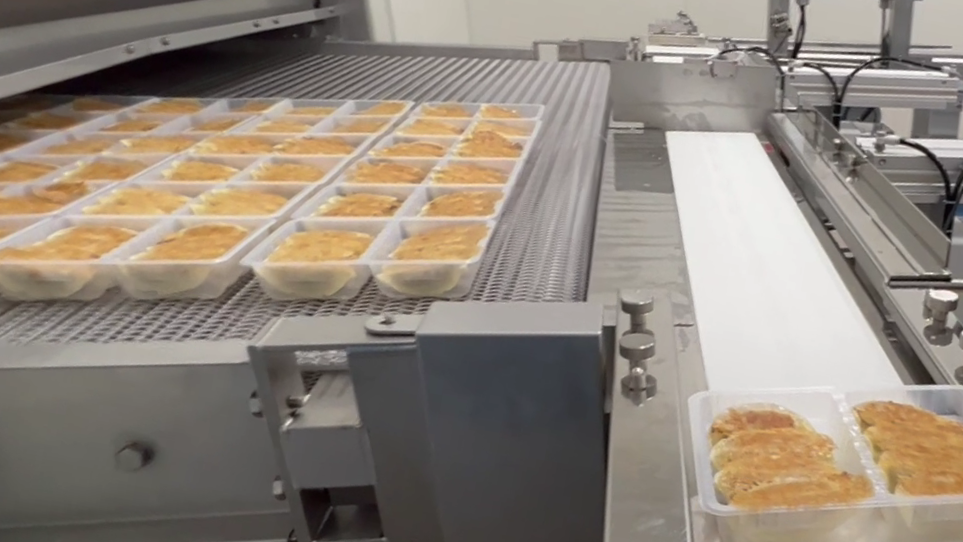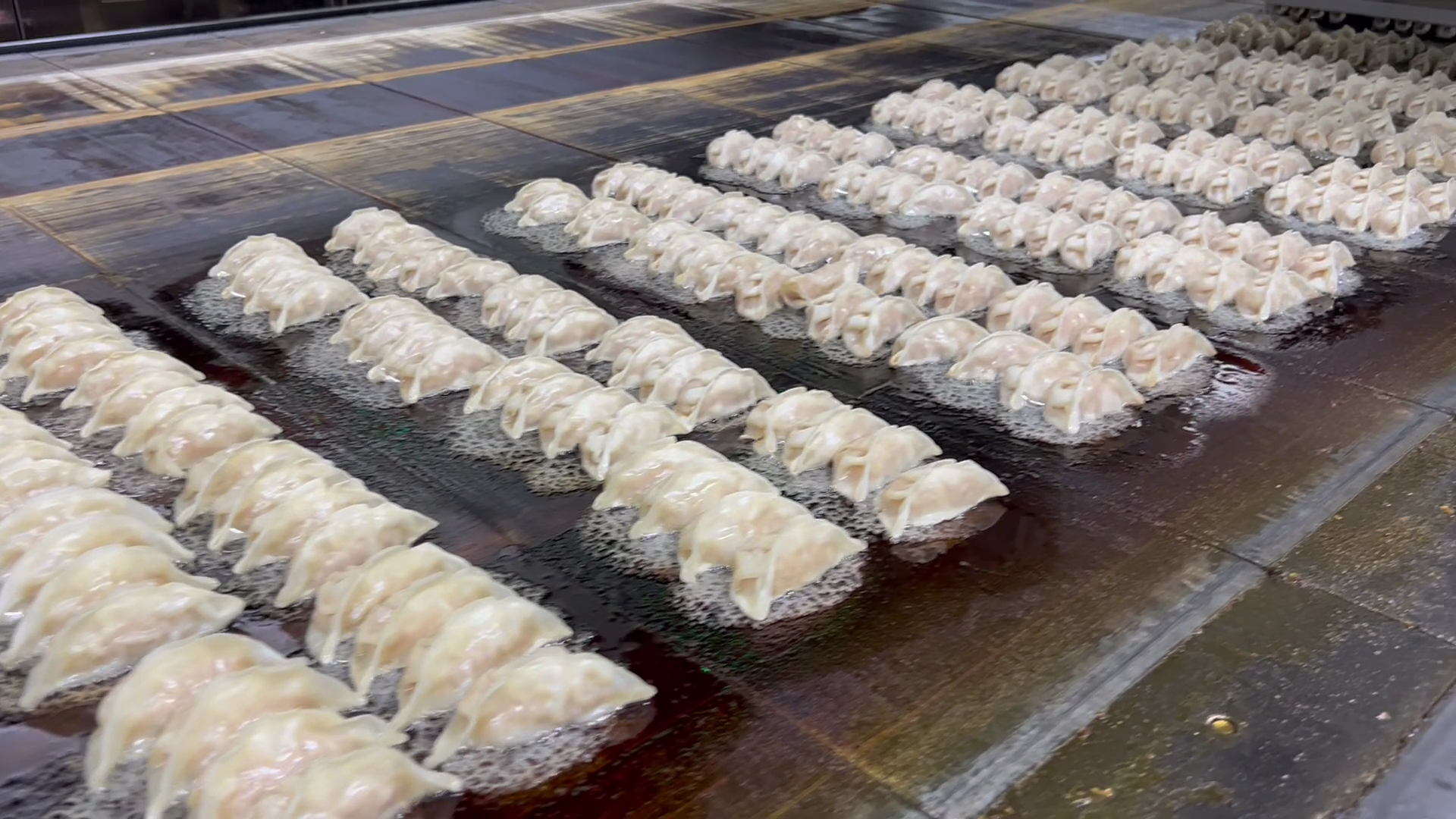当社では、2023年1月より稼働を開始した関東第三工場の生産設備増強を受け、新たなカテゴリーの商品開発に取り組み、レンジ調理品となる焼き目つき餃子製造ラインを関東第一工場に新設。当社の中華カテゴリー商品の多くは、蒸し工程を行っております。また水餃子カテゴリーについてはボイル工程を行っておりますが、今回の『大阪王将 レンジ専用! プロ焼きジューシー餃子』で発生する焼き工程は、今までにない新しい工程。そこで、『大阪王将 レンジ専用! プロ焼きジューシー餃子』に合わせて成型機を進化・開発。餃子成型から包装工程までをオートメーション化することも実現いたしました。