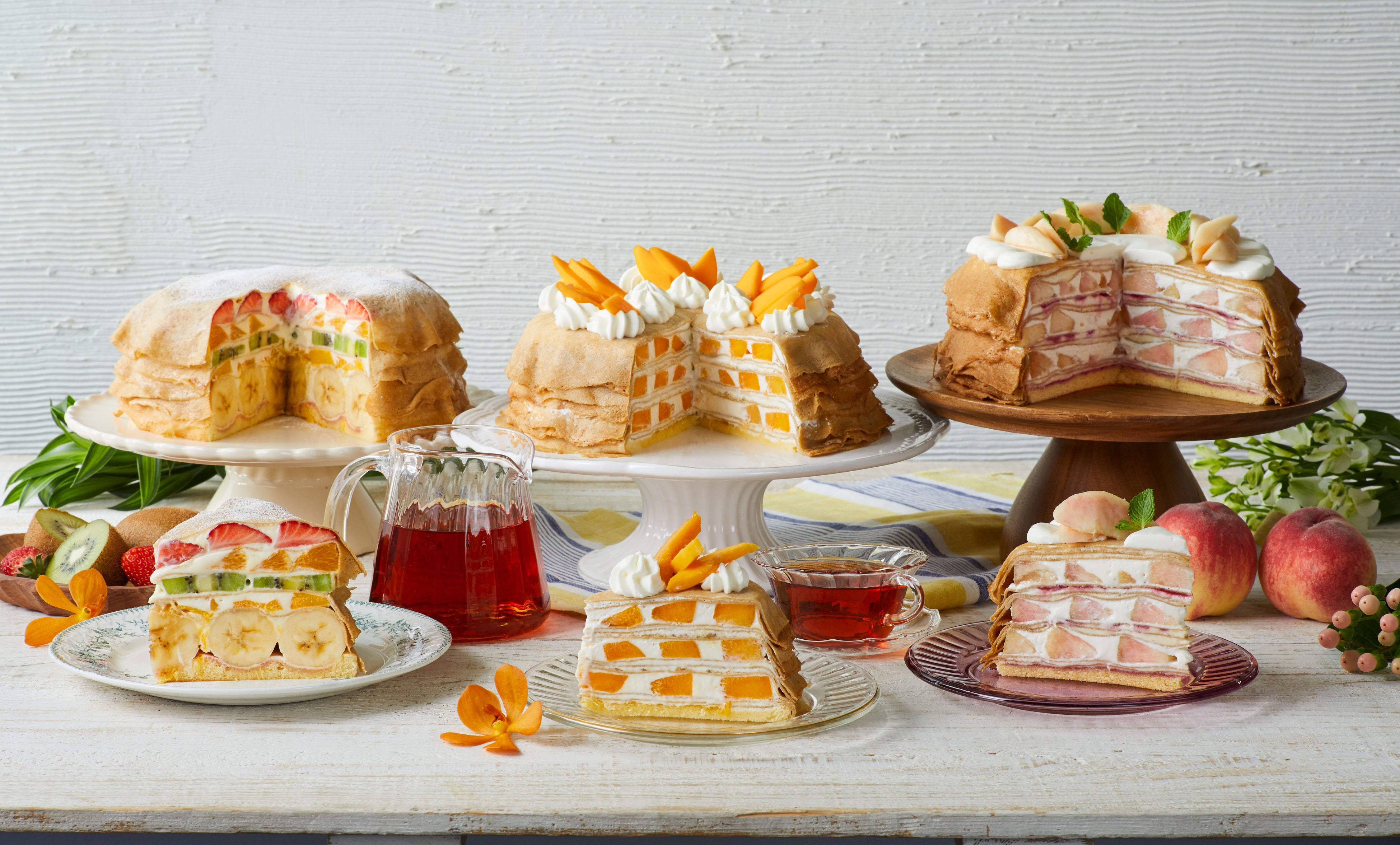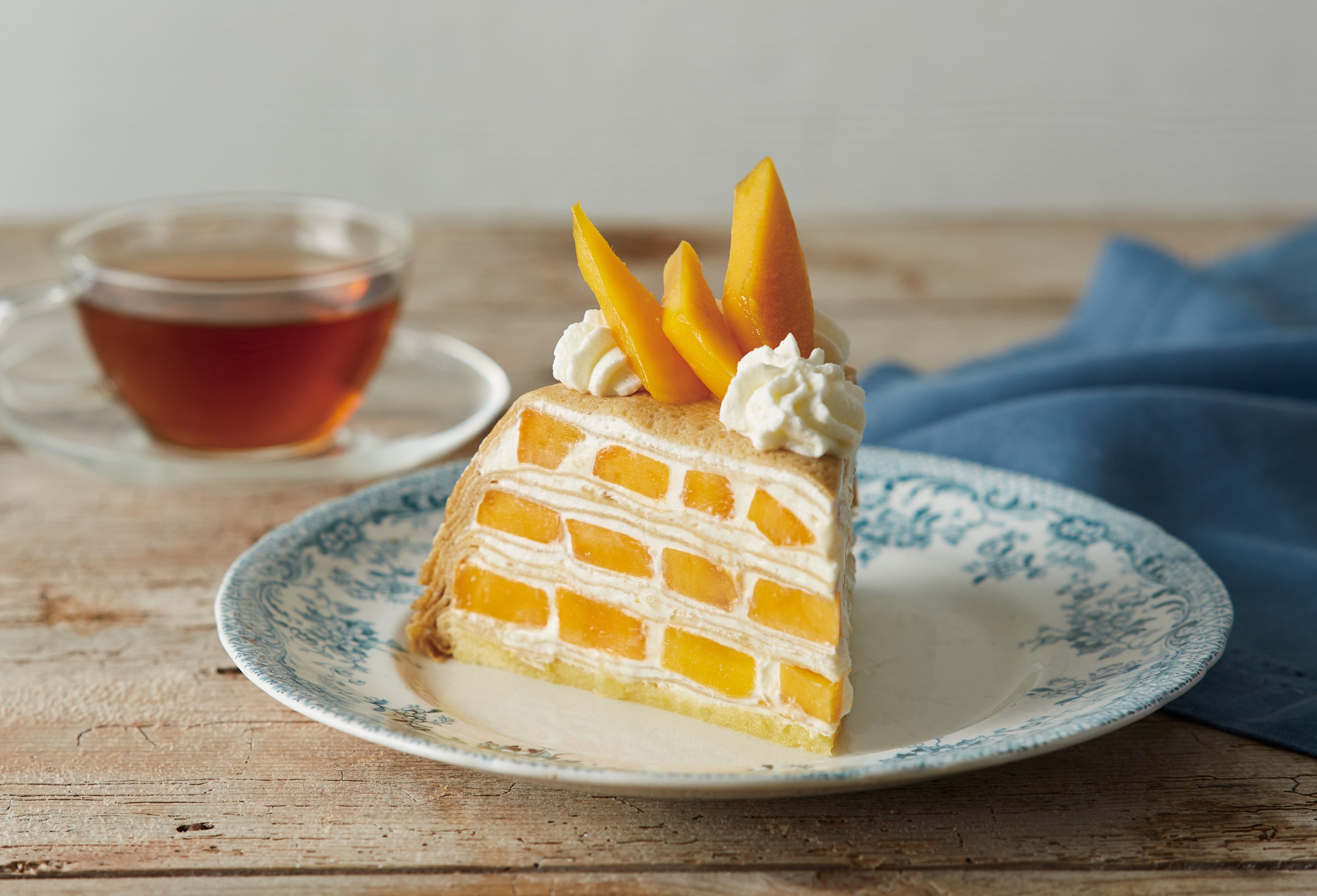 夏のフルーツ“白桃”と“マンゴー”を贅沢に重ねた、期間限定のミルクレープを順次発売!