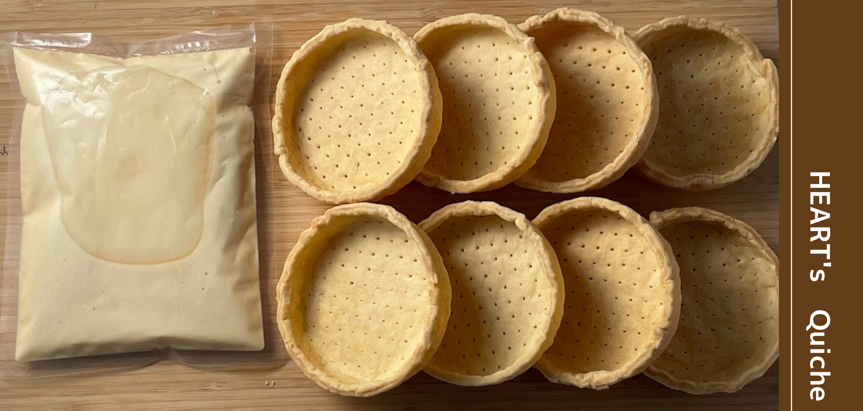 キットの内容は、HEART’s Quicheオリジナルのサクサクキッシュ生地(空焼き済)8個と、8個分のアパレイユ。