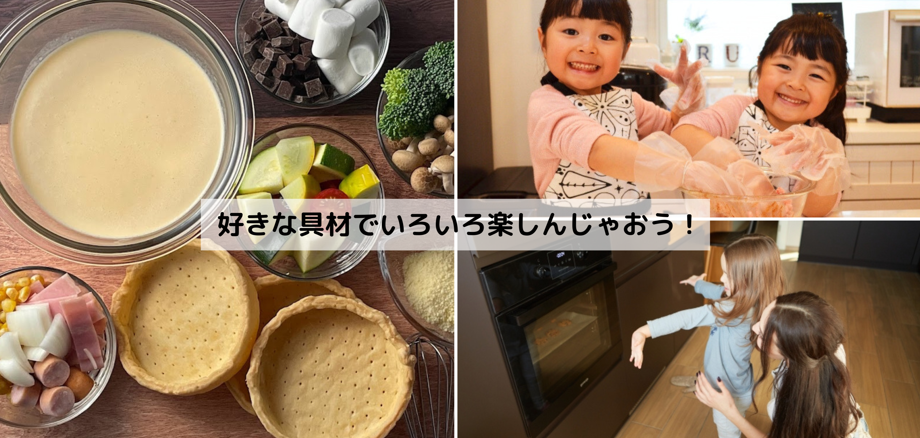 ウインナーやコーン、お野菜などを入れて総菜系キッシュや、マシュマロやチョコやクリームチーズを入れてデザート系キッシュに。