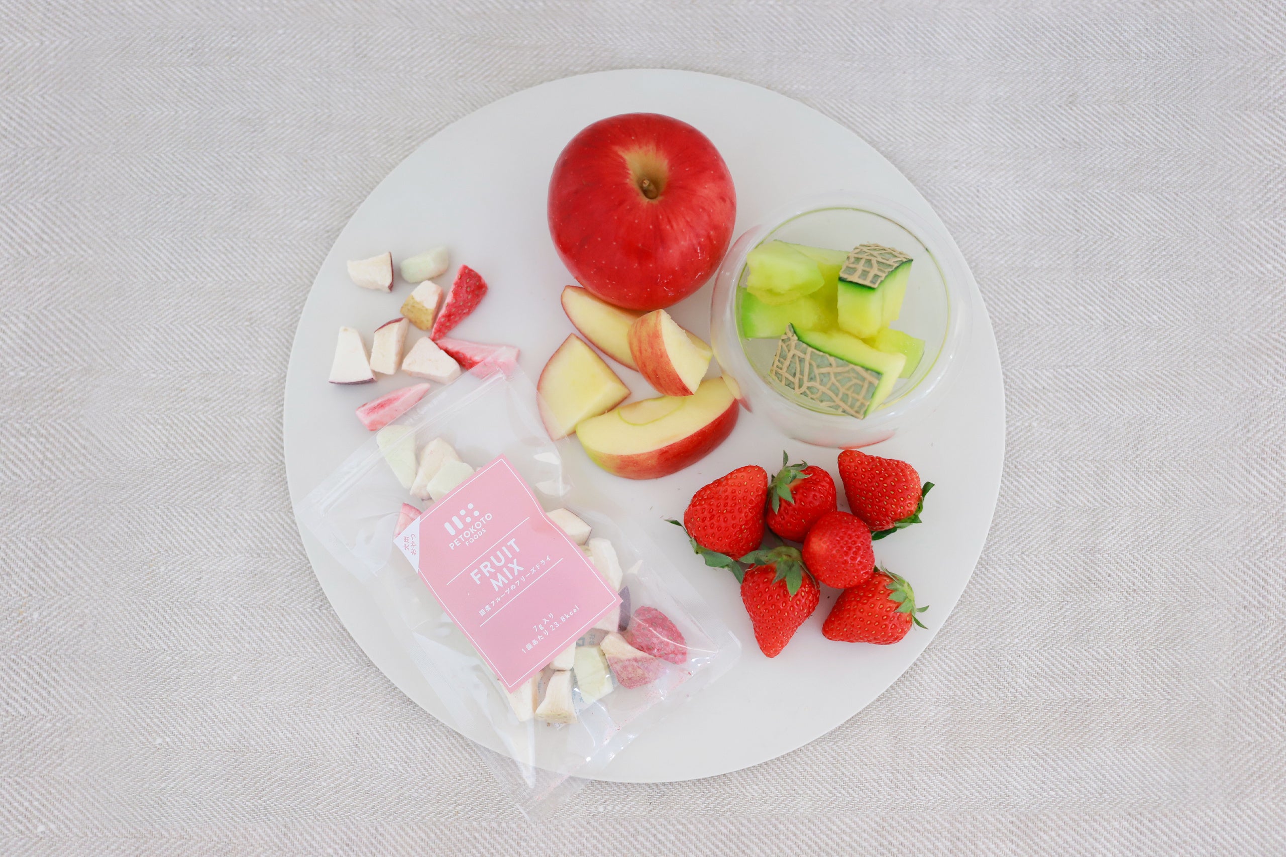青森県産のりんご3種(紅玉・ふじ・王林)と国産のいちご、メロンを贅沢にミックスしました。天然の甘い香りが鼻をくすぐる、フルーツ好きな愛犬に食べてもらいたい一品です。