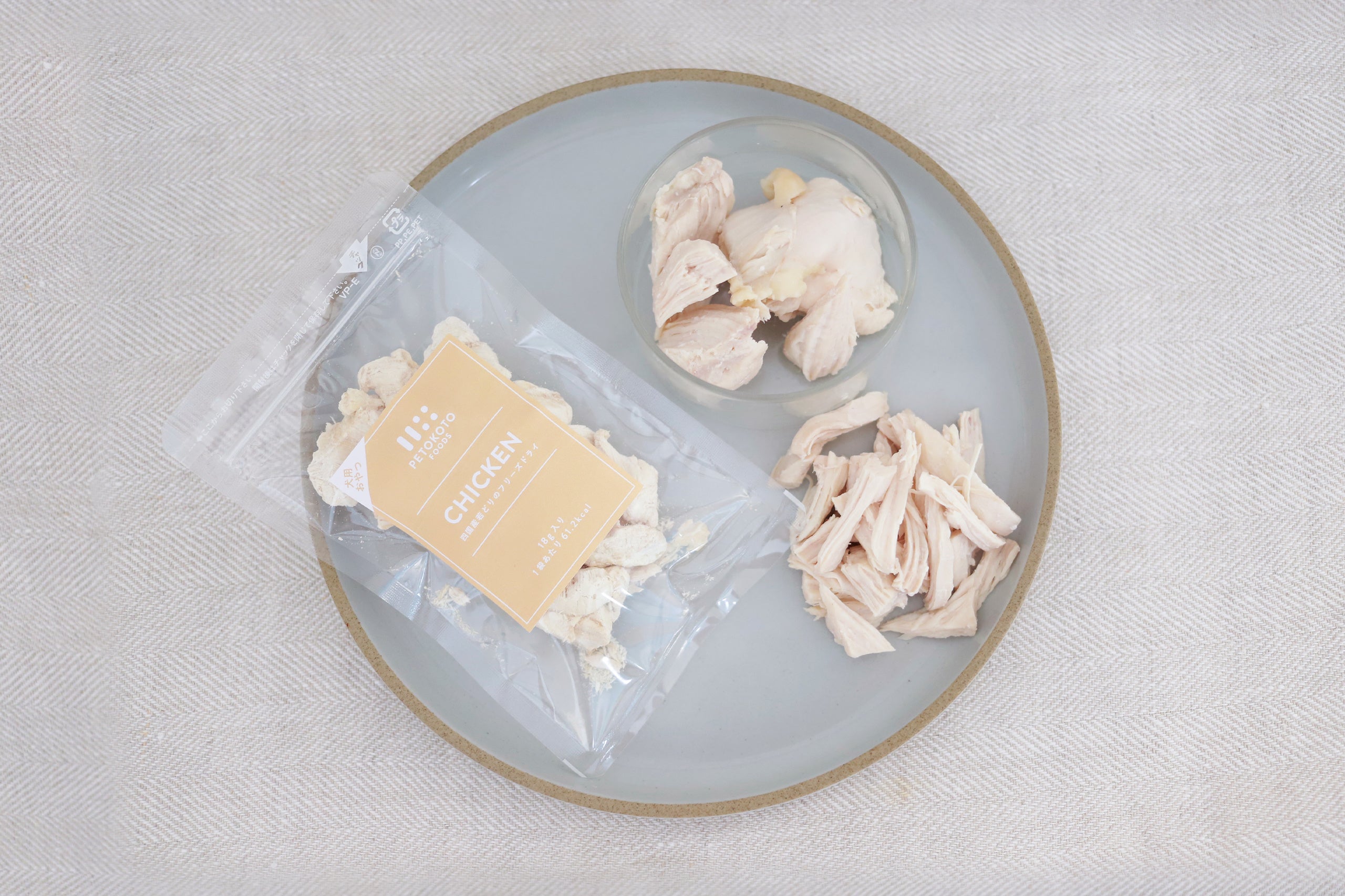 鶏本来の味と香りが堪能できる一品。旨みを逃さないよう、ボイルではなく表面に熱を通すスチームで下処理をし、フリーズドライ加工でフワフワ食感に仕上げました。