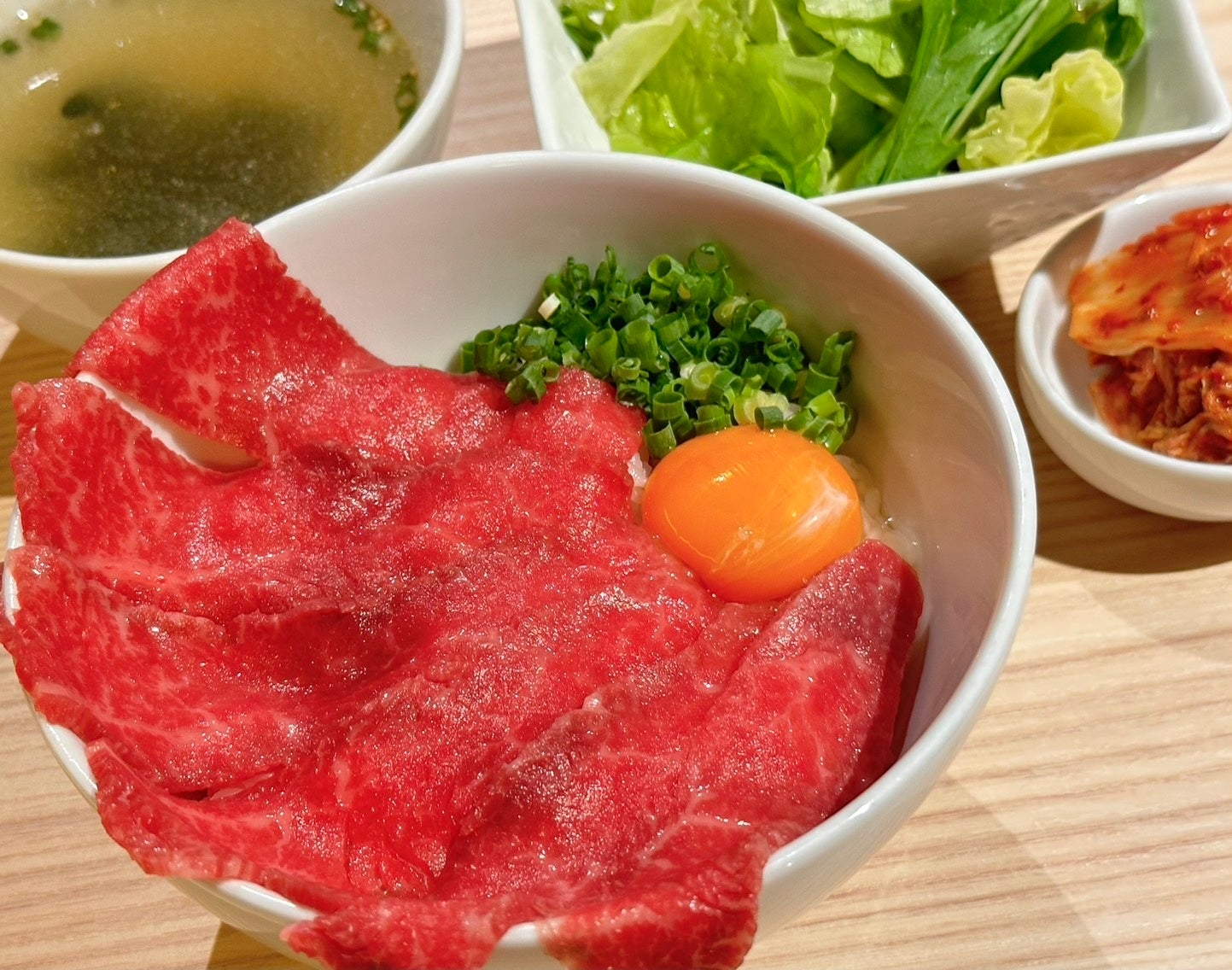 SNSで話題の赤身丼はなんと何杯でもおかわり無料!あっさりと食べれる赤身肉に甘いすき焼きタレをかければ無限に食べれる満腹間違いなしのランチ。”A5ランク伊萬里牛の無限赤身丼”2380円(税込)