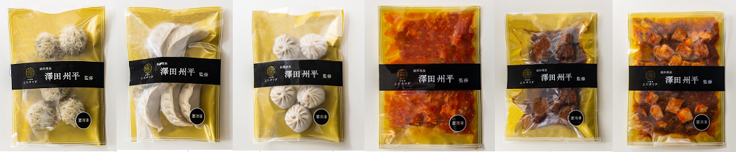 内容量:澤田流 イカ入り焼売125g(25g×5ケ)、澤田流 あふれる肉汁餃子175g(35g×5ケ)、澤田流 手包み小籠包175g(35g×5ケ)、澤田流 大海老のチリソース150g、澤田流 黒酢酢豚150g、澤田流 本格四川風麻婆豆腐150g