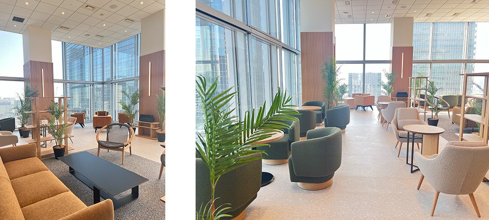 リニューアルした22階は“「CO-EN」フロア”として、異なる組織のメンバーやリクルートという会社の枠をも超えて多種多様な「集まる」・「出会う」が実現できるように、6つの集まる空間とダイニングで構成されています。