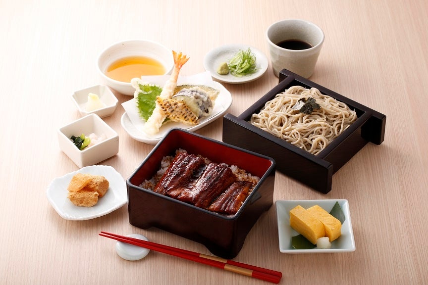家族亭では、フェア期間中、定番のうな重とおそばのセットはもちろん、ちょっと豪華に天ぷらもついた「うな重と季節の天ぷらセット」を販売します。ふんわり焼き上げたうなぎと揚げたての季節の天ぷら、ミニざるそばのセットが暑い夏でも食欲をかきたてます。
