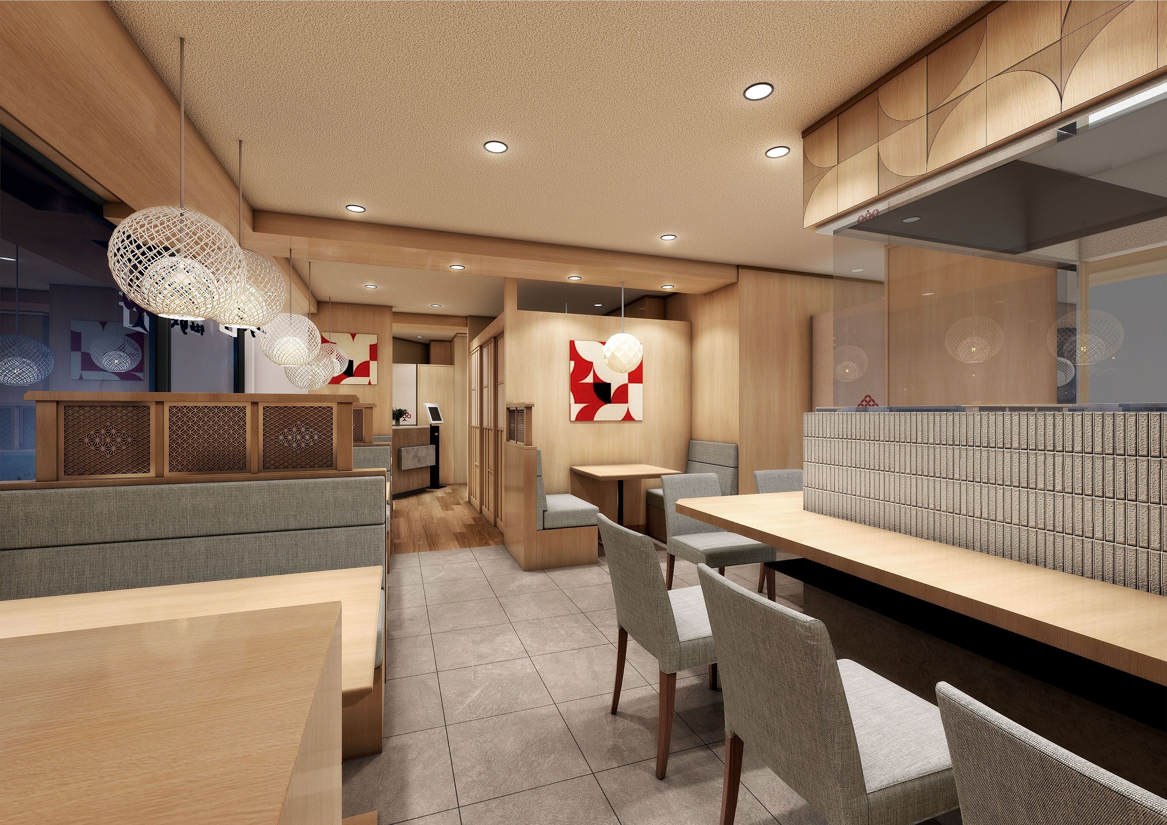 カウンター席からは焼き場が見える臨場感を演出しています。ゆったりとお過ごしいただけるよう、店内全体の明るさやインテリアなどの空間設計にもこだわりました。コハレの場や特別な日の食事に選んでいただけるよう個室もご用意しました。