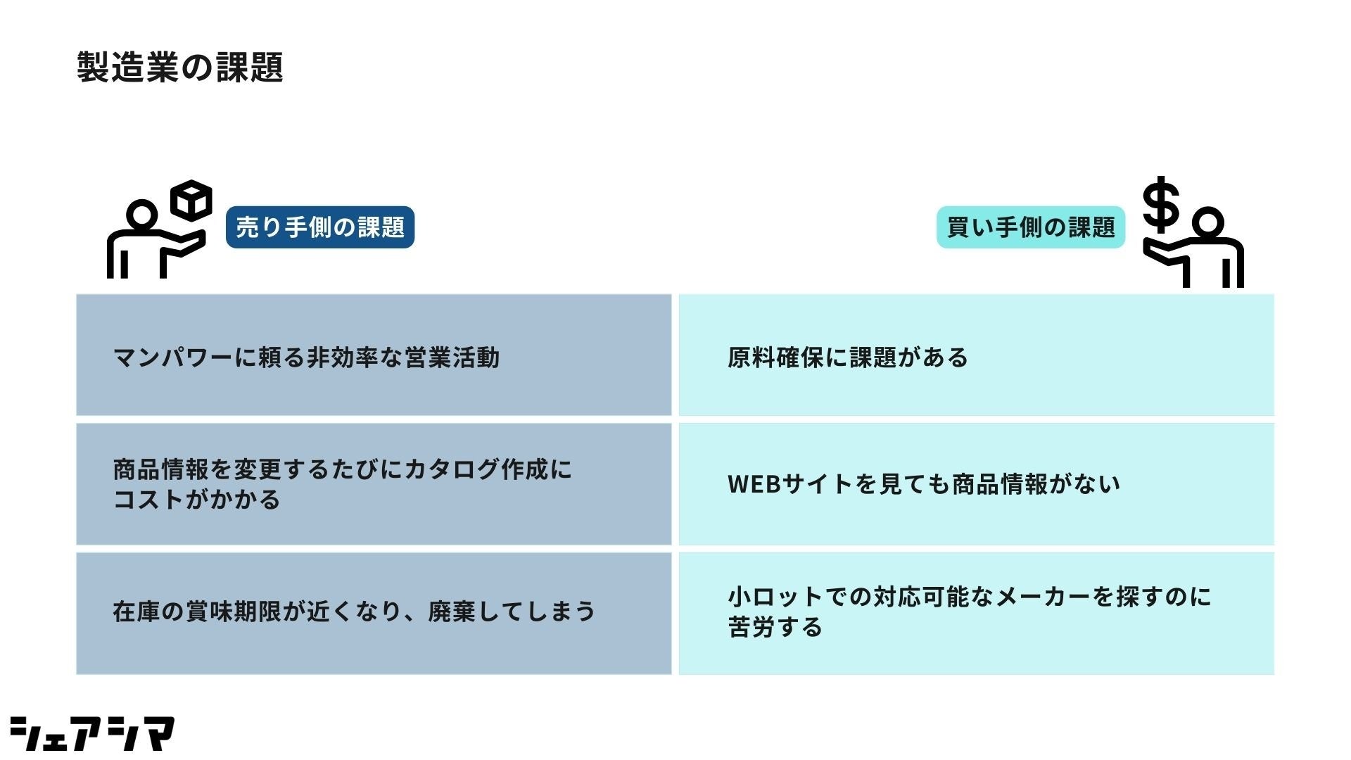 商品開発担当者にとっての駆け込み寺となるためには、マッチングにとどまらずシェアシマが持つソリューションサービスを全面的にご活用いただき、付加価値の高いサービスを享受してもらうことが大切です。継続にご利用頂けるサービスを目指し、日々進化して参ります。