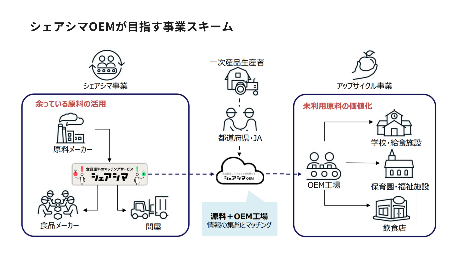 「シェアシマOEM」では、食品OEMに特化した工場検索サービスを提供します。OEM工場を探している企業(委託側)と、OEMを受託したい工場(受託側)のマッチングを促します。企業のニーズに合わせた適切な工場とのマッチングを支援し、スムーズな業務遂行を支援します。2023年1月30日に試験運用を開始して以降、11企業18案件(2023年7月現在)が進行しております。