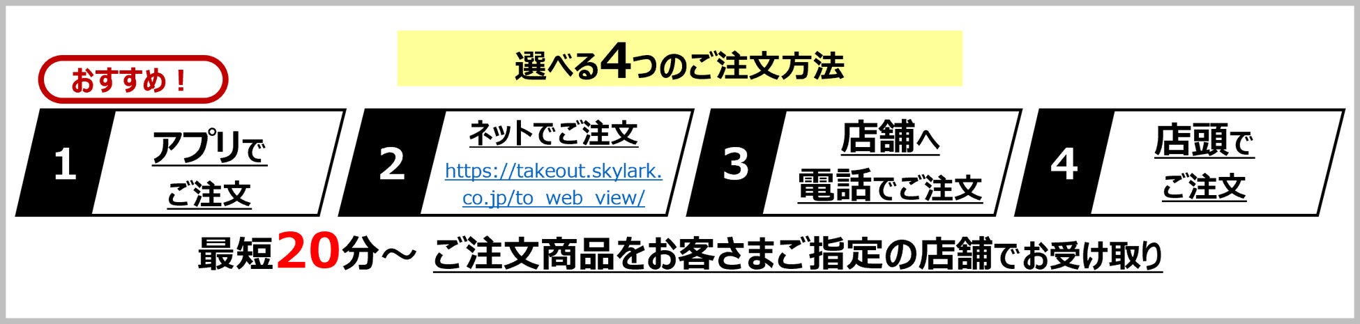 ・テイクアウト専用サイトURL : https://takeout.skylark.co.jp/to_web_view/