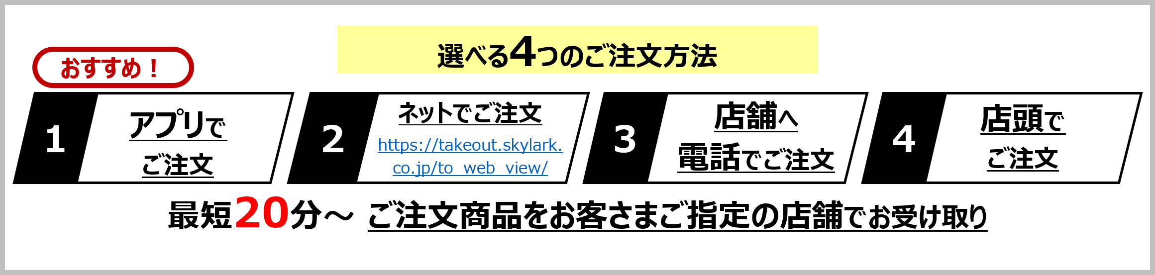 ・テイクアウト専用サイトURL : https://takeout.skylark.co.jp/to_web_view/